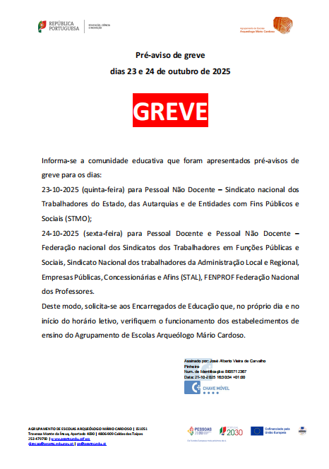 24-10-2025 (sexta-feira) para Pessoal Docente e Pessoal Não Docente – Federação Nacional dos Sindicatos dos Trabalhadores em Funções Públicas e Sociais, Sindicato Nacional dos Trabalhadores da Administração Local e Regional, Empresas Públicas, Concessionárias e Afins (STAL), FENPROF Federação Nacional dos Professores.