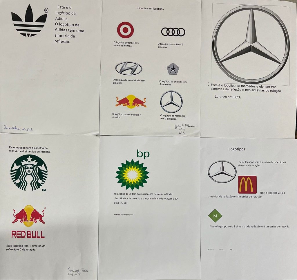 No âmbito do estudo realizado sobre simetrias e rotações, foi proposto aos alunos a realização de um trabalho/projeto com o objetivo de destacar a importância da Matemática na construção do mundo que nos rodeia. Os alunos das turmas A e B do 6ºano, desenvolveram tarefas com informações sobre logótipos, rosáceas e azulejos.