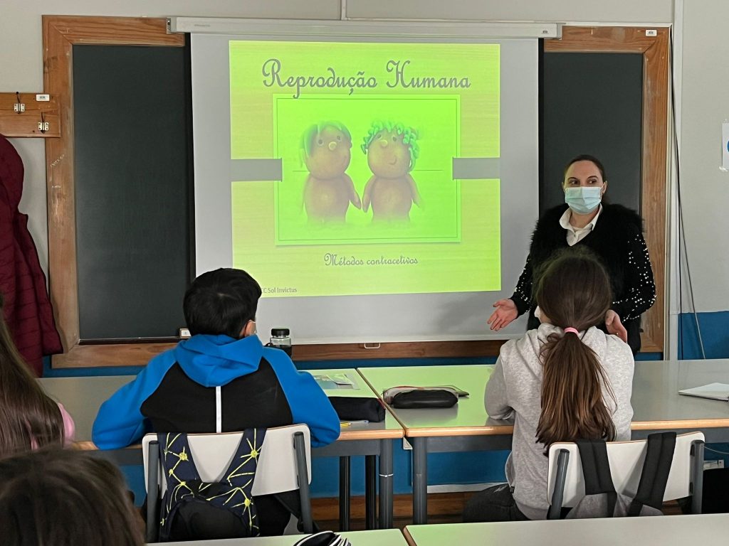O Projeto de Educação para a Saúde (PES) e Equipa de Saúde Escolar em articulação com o grupo de Ciências Naturais do 2.º ciclo, promoveram a atividade “Reprodução Humana – métodos contracetivos”, junto dos alunos do 6.º ano de escolaridade. A sessão de esclarecimento realizada pela Enfermeira Marta Araújo, da UCC Sol Invictus, permitiu aos alunos ampliarem os seus conhecimentos no que diz respeito aos métodos contracetivos. A atividade decorreu durante o mês de março de 2022.
